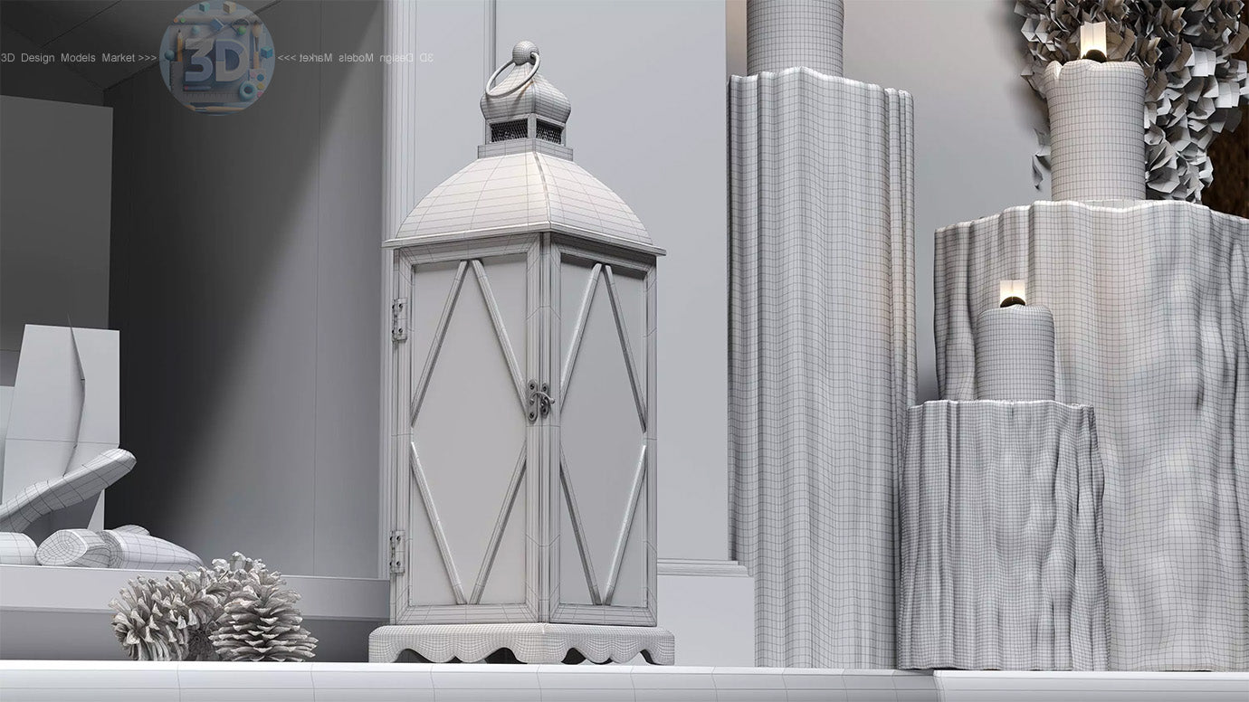 This high-quality 3D model features a beautifully crafted rustic Christmas fireplace. The detailed stone structure, warm wooden framing, and lush pine decorations create a cozy holiday atmosphere. The scene includes a festive wreath, natural pine garlands, candles, and elegant lanterns, all illuminated with soft warm lighting. The fireplace contains a realistic burning fire, adding life and warmth to the setting. Perfect for interior visualizations, holiday scenes, advertising renders, and Christmas-themed CG projects.